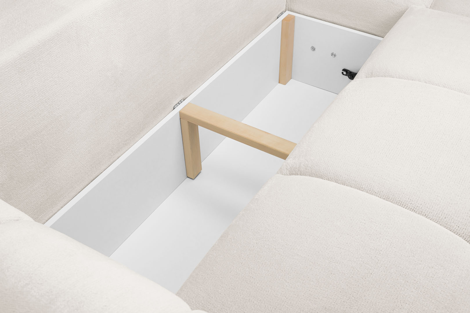 The Azzuro Sofabed is a versatile and stylish corner sofa with low profile arms, wooden legs, and cream-colored upholstery with imprinted stripes that add detail to this contemporary design. With an easy conversion that transforms it into a comfortable bed, this functional sofabed is ideal for unexpected guests or hosting family and friends.