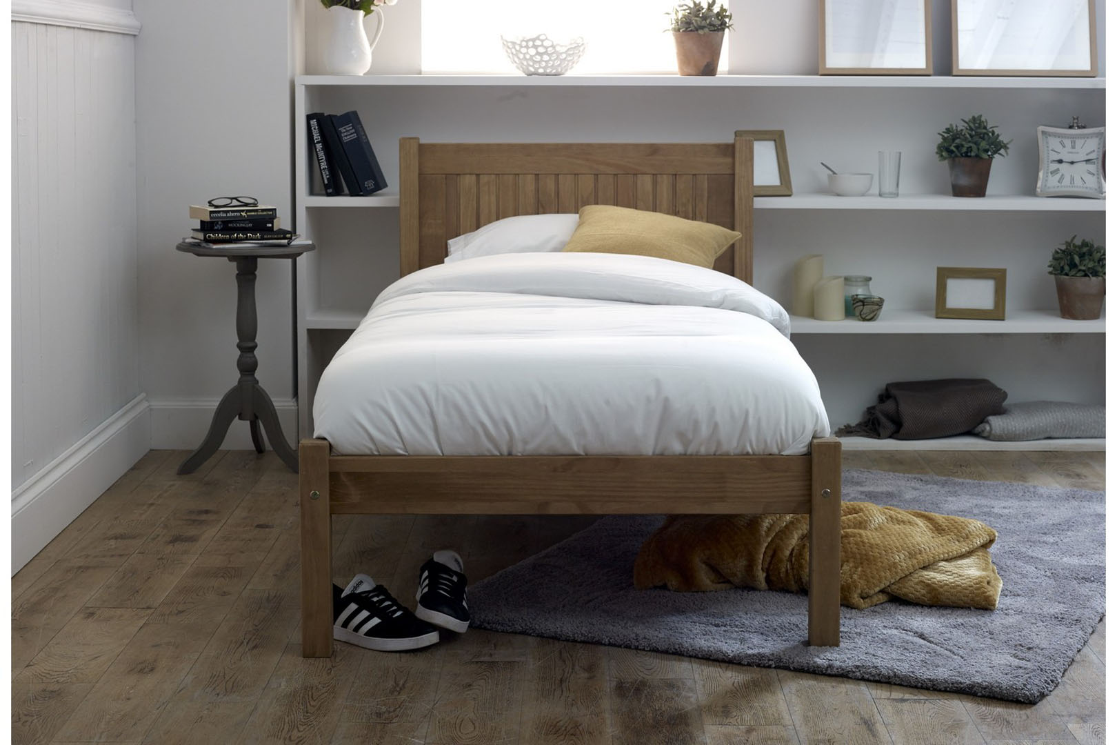 This gorgeous single bedstead has a beautiful pine-finish and a neat wooden frame capable of complementing almost any surroundings.