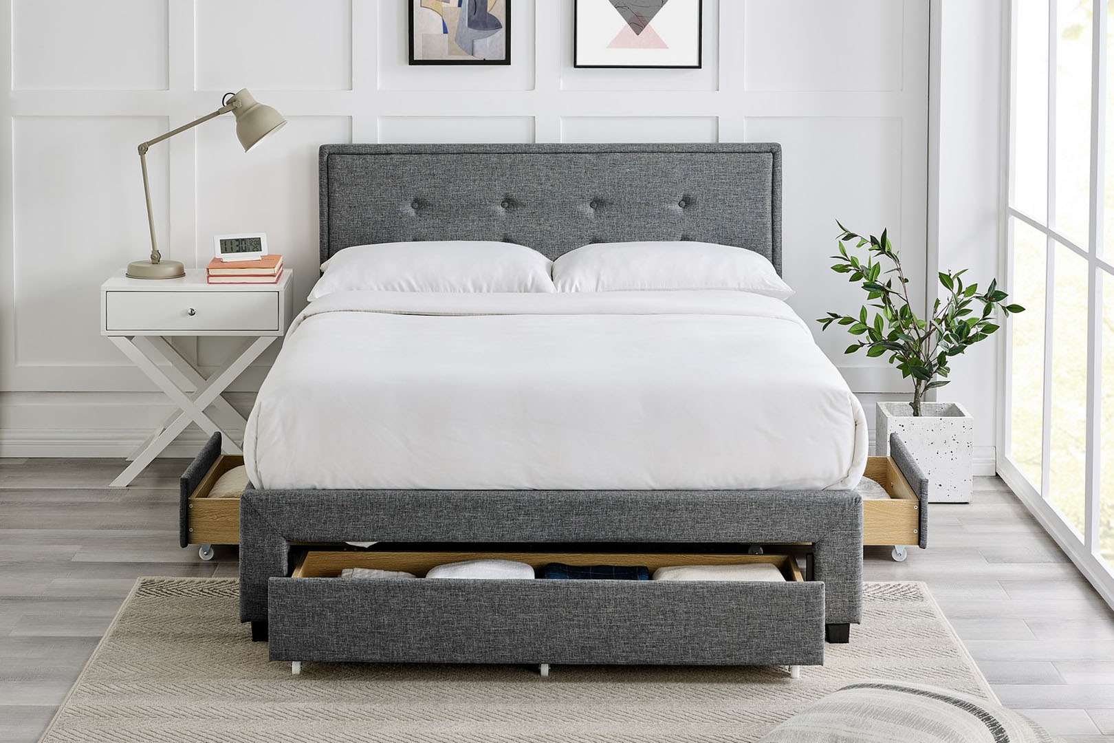 A classic, button-back design meets a sleek, modern finish – this bed has the perfect balance of style, comfort and storage!