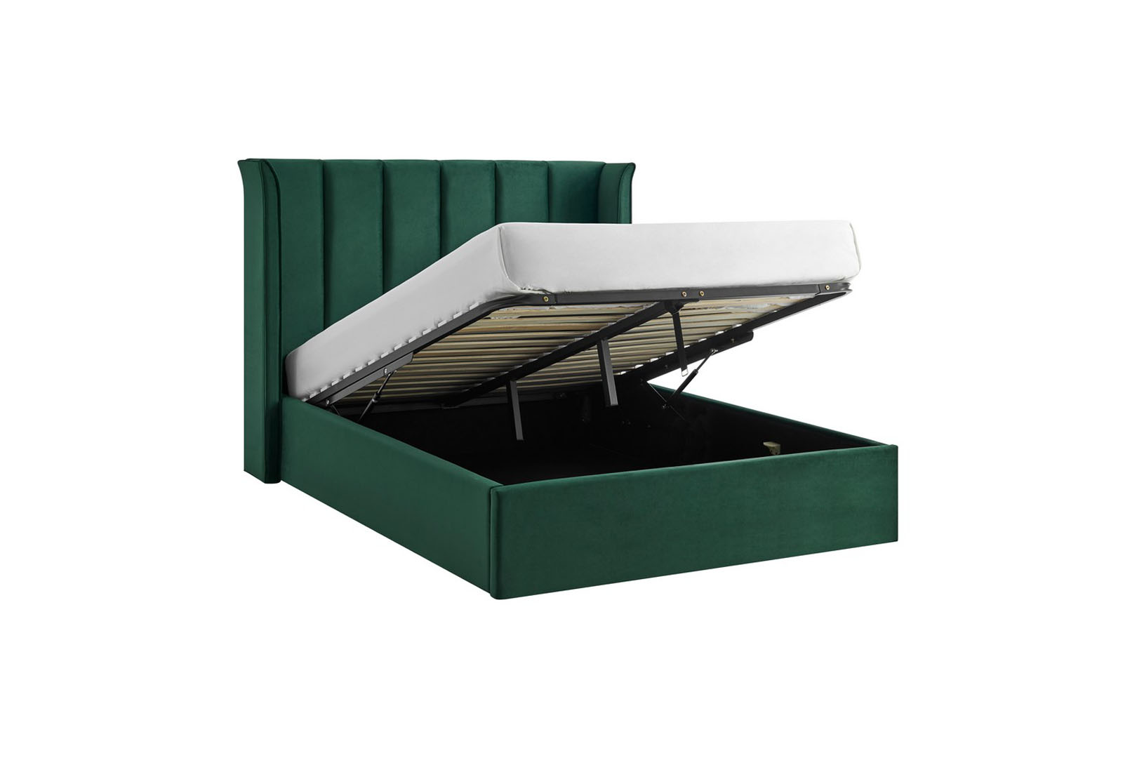 The Polaris Bed is a statement bed piece with an opulent and luxurious style. Featuring elegant winged lines on the headboard, sleek feet for a finishing touch, and sumptuous velvet upholstery.